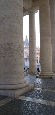Stojąc przodem do Zamku, po lewej stronie mam Bazylikę Świętego Piotra wraz z wiodącą do niej Via della Conciliazione. Nigdy nie zapuszczam się tam w dzień – zbyt duży tłum nie pozwala mi w pełni cieszyć się pięknem tego miejsca. Wracam tutaj wieczorem, kiedy Plac Świętego Piotra pustoszeje. Siadam wtedy pod jedną z kolumn i obserwuję, patrzę na wyłaniającą się zza kolumnady kopułę, słucham szumu fontanny Berniniego i wreszcie mogę zebrać myśli lub po prostu cieszyć się tym widokiem.