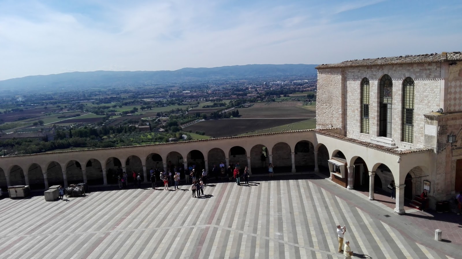 Bazylika Świętego Franciszka z zewnątrz robi wrażenie skromnego kościoła. Żeby dostać się do środka trzeba przejść przez rozległy, lekko pochyły plac. Kiedy już dotrzemy na jego przeciwległy kraniec, czy to środkiem, czy pod arakadami po prawej stronie, znajdziemy się przed wejściem do dolnego kościoła. Po wejściu w oczy uderza piękno i… bogactwo, czyli ostatnia rzecz, z jaką skojarzyłabym świętego patrona tej bazyliki. Postanowiłam uwiecznić to na zdjęciu, ale ledwo podniosłam aparat, usłyszałam stanowcze: NO FOTO! Grzecznie opuściłam sprzęt i pokornie przeprosiłam, więcej nie będę. Przeszłam przez dolną część świątyni, zaglądając w każdy jej zakamarek i żałując, że nie mogę tego uwiecznić. Żeby dostać się do górnego kościoła trzeba wyjść na zewnątrz i przejść przez arkadowy dziedziniec, a następnie wspiąć się po schodach. Ta część bazyliki jest ozdobiona jeszcze bardziej bogato. Trudno. Rozejrzałam się czy w pobliżu nie stoi żaden umundurowany pan pilnujący porządku, wyjęłam aparat i… pstryk. Ha! Będę miała chociaż jedno zdjęcie. Dopiero po jakimś czasie zorientuję się, że coś poszło nie tak i jedna, jedyna fotografia z tego wyjątkowego miejsca po prostu, nie wyszła. Dzięki święty Franciszku 😉. Utwierdziłam się w przekonaniu, że traktowanie poważnie wszelkich zakazów nie jest takie głupie.