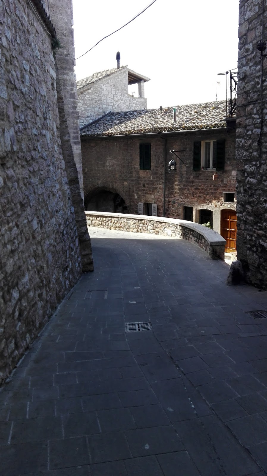 | urokliwe uliczki Asyżu, w tle Bazylika św. Klary |