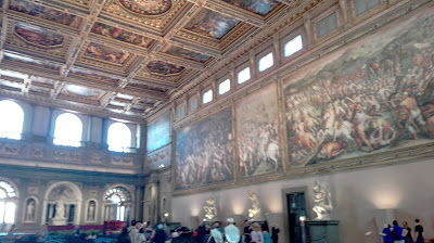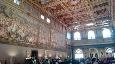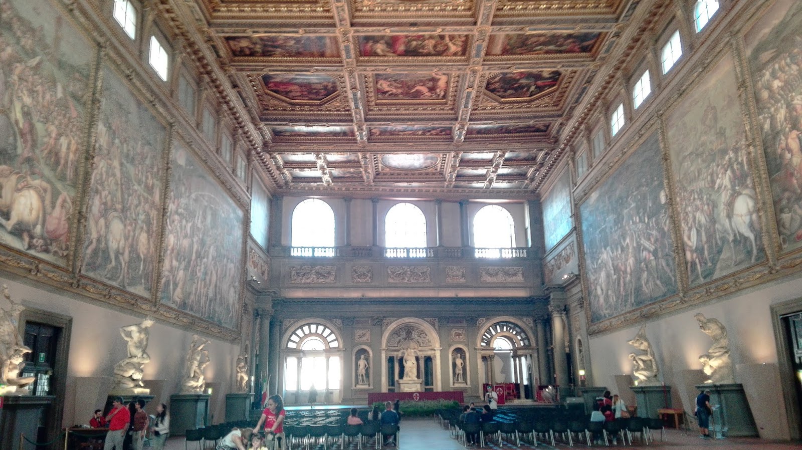 Sala Pięciuset zachwyca nie tylko swoimi rozmiarami, ale bogactwem dzieł sztuki. |
