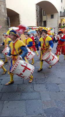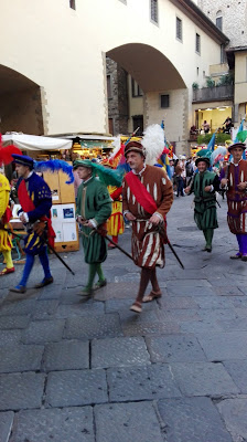 Nie weszłam także do kościoła Santa Maria Novella – postanowiłam tylko odpocząć chwilkę na placu, ale nie pozwoliły mi na to… osy. Tak osy, było ich tam tak dużo, że bezpieczniej było po prostu się stamtąd oddalić. Spacerując ulicami, tuż po zejściu z Ponte Vecchio, natknęłam się na idący wprost na mnie pochód mężczyzn w tradycyjnych strojach florenckich. Nie wiem co to była za okazja, ale panowie byli atrakcją popołudnia – wszyscy zatrzymywali się, przepuszczając tę barwną procesję i robiąc zdjęcia.