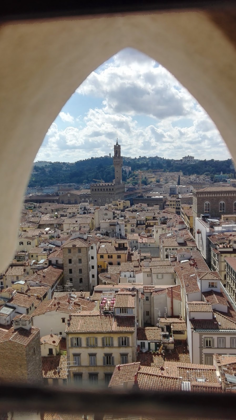 Panorama Florencji (i nie tylko),widziana z różnych wysokości i z samego szczytu wieży |