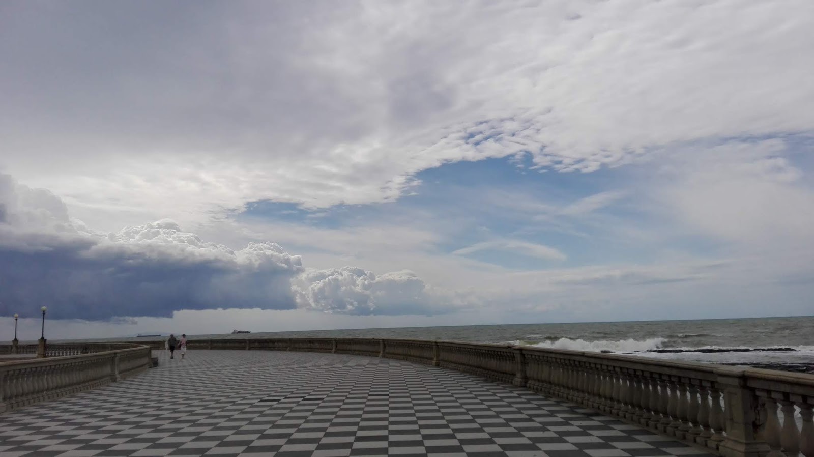 Kiedy wreszcie dotarłam do Terazza Mascagni, ze zdziwieniem stwierdziłam, że wychylając się przez barierki można zobaczyć morskie fale rozbijające się o promenadę, żadnej plaży. Powoli spacerowałam wzdłuż brzegu, po charakterystycznie ułożonych białych i czarnych kafelkach, tworzących wzór szachownicy. Co jakiś czas siadałam na kamiennych ławkach i obserwowałam statki wypływające z portu albo startujące i lądujące na lotnisku w Pizie samoloty. W przerwach między siedzeniem i spacerowaniem, po prostu stałam przy balustradzie i mówiąc brzydko, gapiłam się na morze i słuchałam szumu rozbijających się o brzeg fal. W oddali, mimo kapryśnej pogody, widać było niewielkie wyspy, a przynajmniej z odległości takie się właśnie wydawały. Wszystko mówiło mi, że przyjazd tu to był bardzo dobry pomysł – nad Pizą zbierały się czarne deszczowe chmury, z drugiej strony niebo też nie wyglądało zachęcająco. Wydawało się, że chmury rozstąpiły się tylko nad Livorno. Na moment nawet wyszło słońce. Nie wiem kiedy dotarłam na koniec promenady, a w zasadzie to na jej początek – wyglądało to na wejście na deptak, obok stała urocza altanka. Szumiące morze i piękny widok spowodowały, że w ogóle nie czułam tego, że za plecami mam ruchliwą i głośną ulicę. Podobnie jak nie czułam upływającego czasu – nie mam pojęcia kiedy minęły prawie trzy godziny. Wracając na dworzec, czułam, że właśnie to było mi potrzebne – chwila wytchnienia i spokoju. Czasem trzeba na moment zwolnić i wyciszyć się z dala od zgiełku i tłumów. Krótki wypad w pełni spełnił moje oczekiwania. Idąc wzdłuż jednej z bardziej ruchliwych ulic Livorno, nie słyszałam jadących tam samochodów, a nawet nadużywane przez kierowców klaksony nie irytowały mnie wcale.