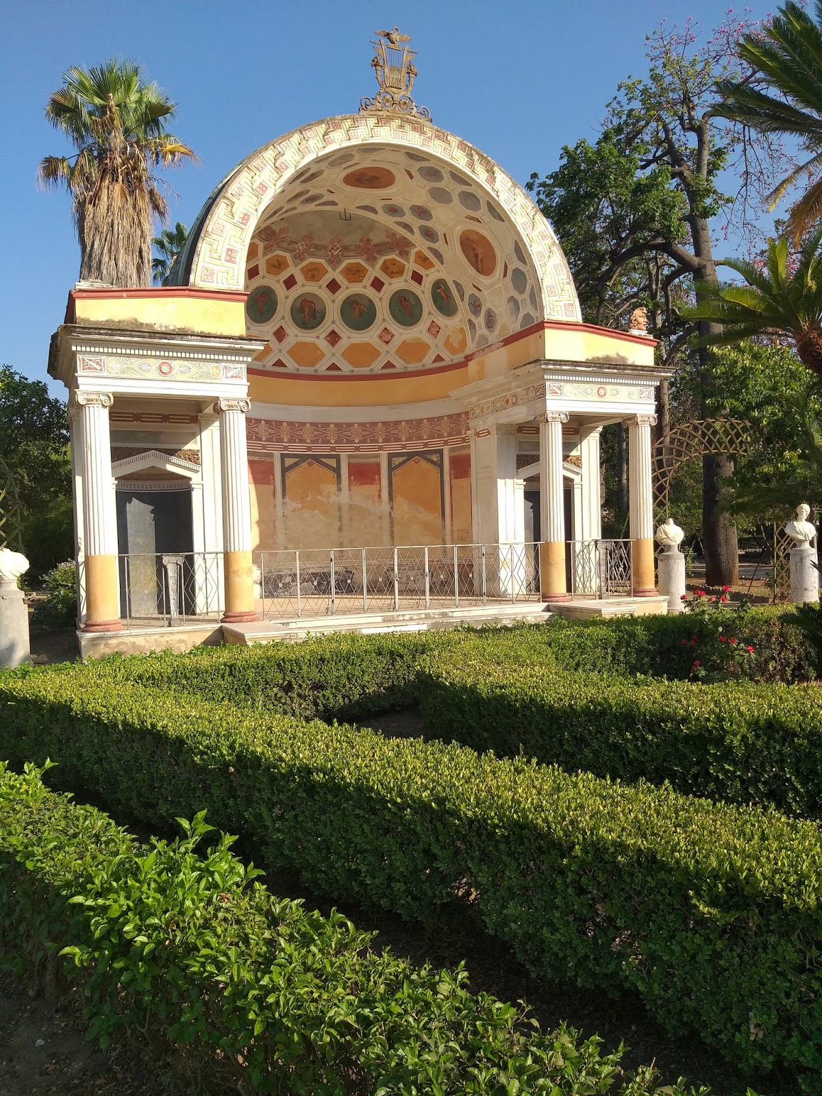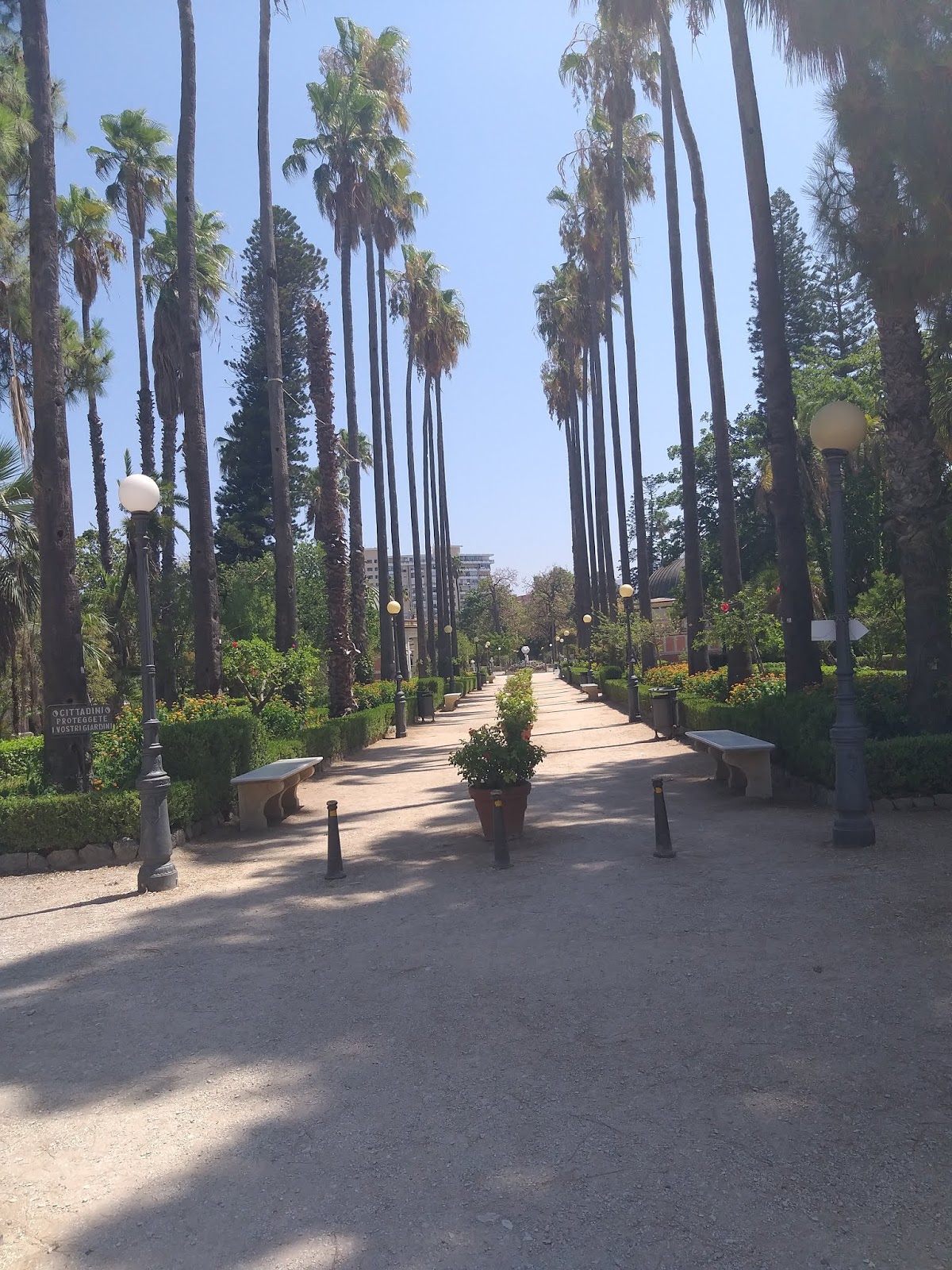 Po tak „ekstremalnych” wysiłkach (chodzi mi raczej o temperaturę niż samo wejście), nie pozostało mi nic innego, jak tylko zakończyć zwiedzanie i ochłodzić się w jakimś przyjemnym parku. Polecam spędzić popołudnie wśród roślinności Villa Giulia. Pośrodku ogrodu znajduje się zegar słoneczny, nazywany „zegarem na dwunastościanie”, umieszczony na samym środku fontanny, na marmurowej kostce. Nad głowami spacerowiczów przelatują zadomowione tu zielone papugi. Villa Giulia to nie tylko park z egzotyczną roślinnością, ale także małe muzeum na świeżym powietrzu – znajdziecie tu wiele rzeźb wykonanych z marmuru. Najważniejszą z nich jest Geniusz Palermo – mężczyzna w rzymskiej zbroi, z brodą i koroną niczym Neptun. Łaciński napis głosi, że Palermo ma pełnić funkcję stolicy Sycylii. Starożytni rozumieli geniusz jako ducha opiekuńczego, zaś lokalna legenda mówi, że geniuszem miasta miał być założyciel – mężczyzna o imieniu Palermo, który podczas długiej morskiej podróży zachwycony tą okolicą postanowił założyć tutaj miasto.