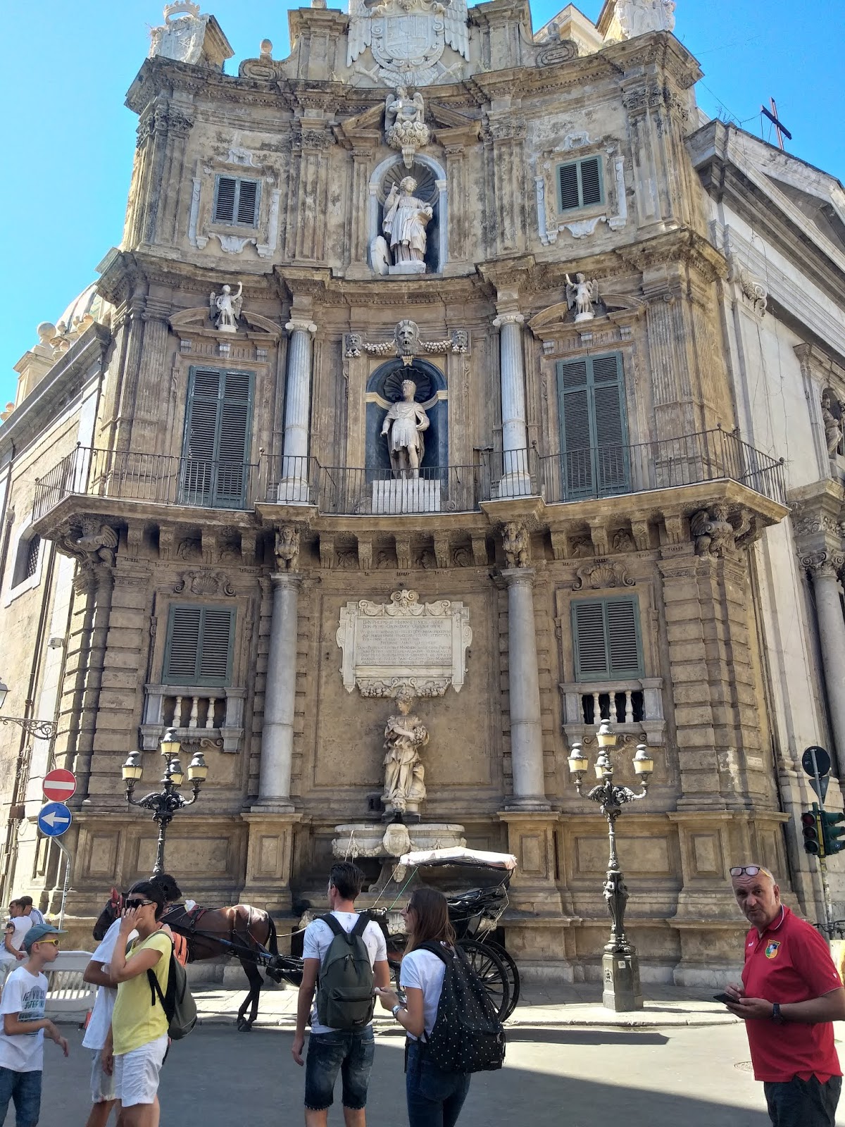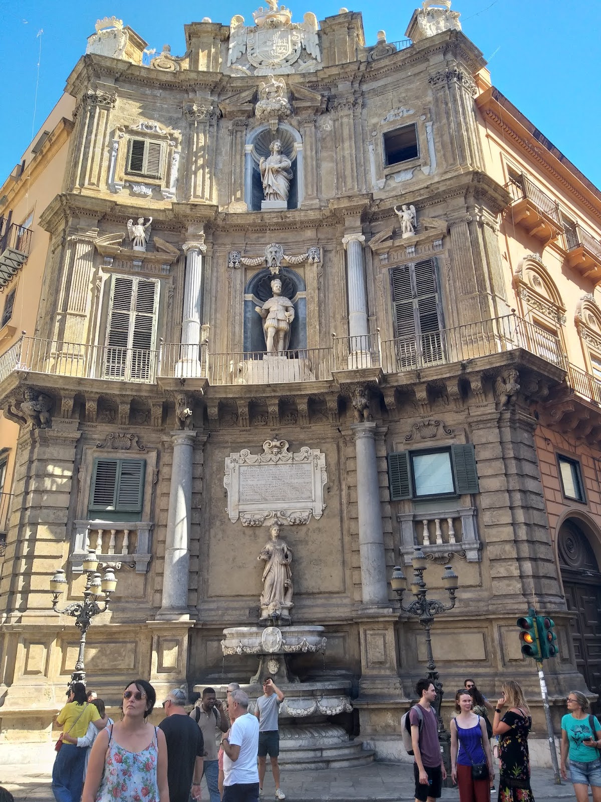 Quattro Canti, a właściwie Piazza Vigliena to najpopularniejsze skrzyżowanie w Palermo, tu przecinają się Via Maqueda i Via Vittorio Emmanuele. Plac usytuowany jest u zbiegu czterech historycznych dzielnic miasta. Łatwo zauważyć, że wszystkie cztery budynki stojące na Quattro Canti mają wyglądające niemal identycznie, bogato zdobione elewacje. Na każdej z nich, patrząc od dołu, znajdziemy rzeźby przedstawiające jedną z pór roku, podobizny hiszpańskich królów Sycylii (Karola V, Filipa I, Filipa II, Filipa II), oraz cztery święte patronki Palermo – Krystynę, Ninfę, Oliwę i Agatę.