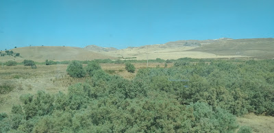 Sama podróż upłynęła dość spokojnie, mimo że rozkładowe trzy godziny przeciągnęły się do czterech, ale skoro siedziałam w klimatyzowanym pociągu, za oknem były piękne widoki i nie musiałam spacerować w upale, nie miałam powodów do narzekań. Często przystawaliśmy w szczerym polu, ale to, co można było podziwiać za oknem wynagradzało długą podróż: najpierw żółte połacie pozostałe po skoszonym zbożu, później zrobiło się trochę bardziej zielono, a ostatni etap tej długiej przejażdżki to podziwianie turkusowej morskiej wody.
