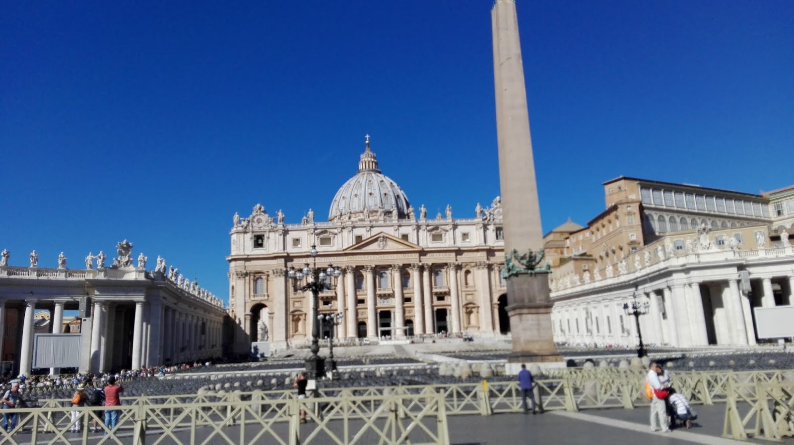 Stojąc przodem do Zamku, po lewej stronie mam Bazylikę Świętego Piotra wraz z wiodącą do niej Via della Conciliazione. Nigdy nie zapuszczam się tam w dzień – zbyt duży tłum nie pozwala mi w pełni cieszyć się pięknem tego miejsca. Wracam tutaj wieczorem, kiedy Plac Świętego Piotra pustoszeje. Siadam wtedy pod jedną z kolumn i obserwuję, patrzę na wyłaniającą się zza kolumnady kopułę, słucham szumu fontanny Berniniego i wreszcie mogę zebrać myśli lub po prostu cieszyć się tym widokiem.