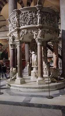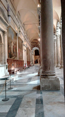 Camposanto to nic innego jak cmentarz. Jednak nie jest to taki zwyczajny cmentarz, jakie znamy tutaj w Polsce, o jego wyjątkowości świadczy też relikwia, która jest tu przechowywana – ziemia przywiezioną z Golgoty, po jednej z wypraw krzyżowych. Nekropolia ma kształt czworoboku, otoczonego otwartymi od wewnątrz krużgankami. Wewnątrz można znaleźć wiele malowideł, fresków oraz oryginalne sarkofagi. Warto też spojrzeć pod nogi. Dość długo spacerowałam wewnątrz tych krużganków, cały czas mając świadomość, gdzie jestem i po czym stąpam. Może wyda Wam się to dziwne, bo jak długo można chodzić po cmentarzu, ale uwierzcie mi, że jest to miejsce wyjątkowe, a wykonanie i niezwykłe formy niektórych płyt nagrobnych wręcz zmuszają do poświęcenia im większej uwagi.