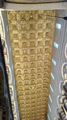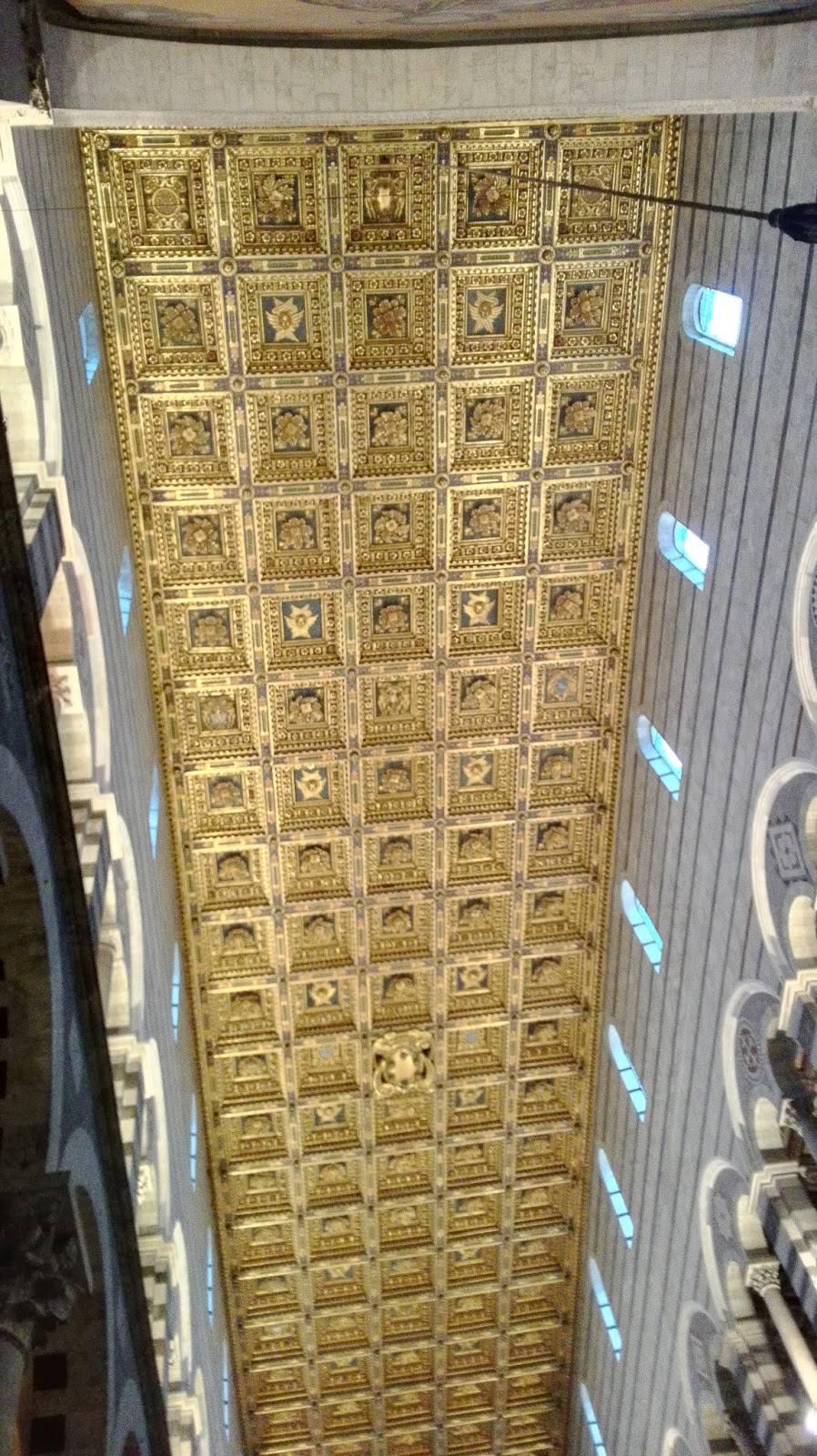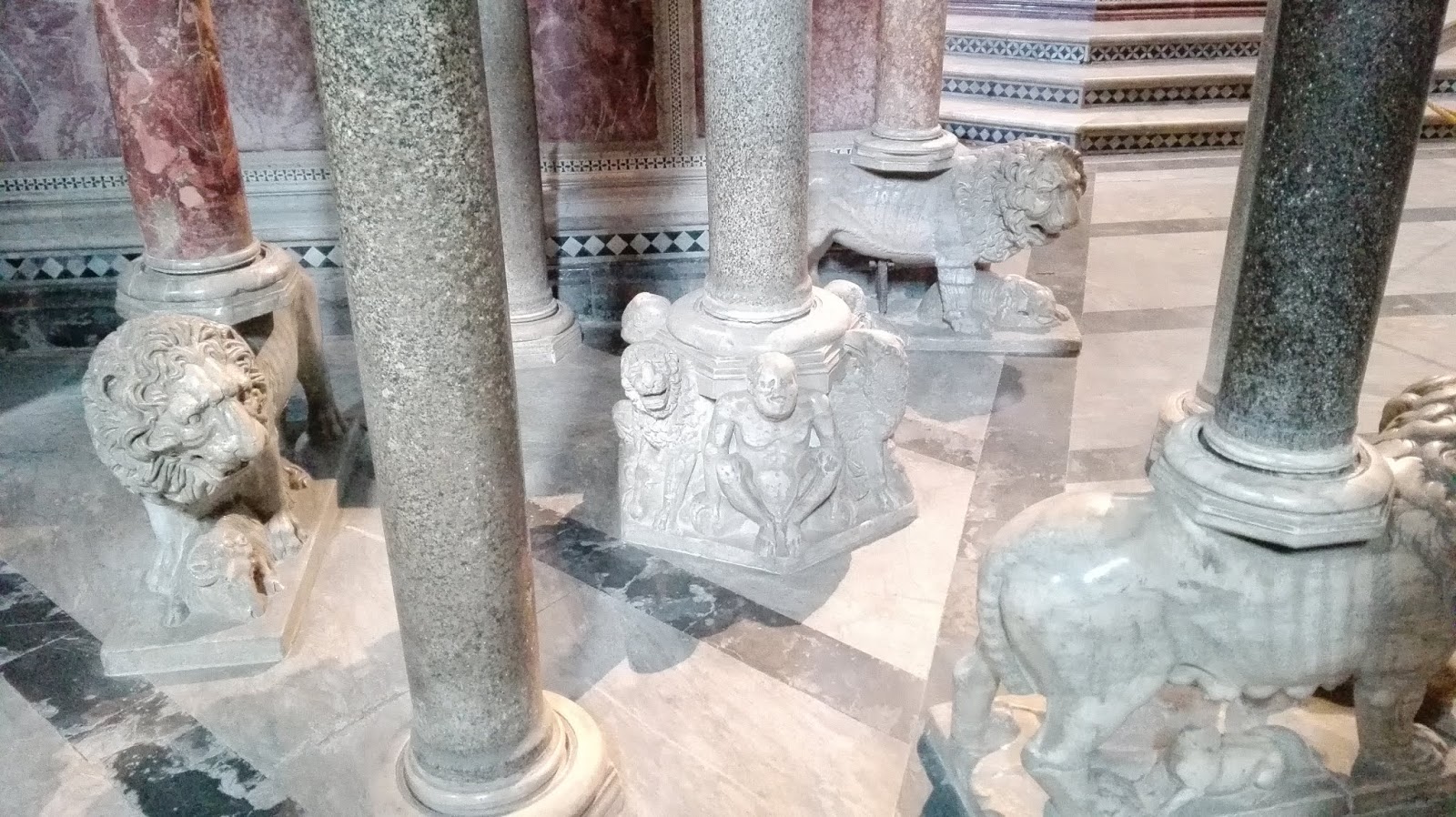 Katedra Wniebowzięcia Najświętszej Marii Panny (Duomo di Santa Maria Assunta) „rzuca na kolana” zarówno swoim wyglądem zewnętrznym, jak i tym, co kryje się w środku. Fasada świątyni udekorowana jest czterema rzędami kolumn. Wnętrze z kolei jest tak bogato zdobione i mieści się w nim tyle dzieł sztuki, że można zwątpić, czy właśnie stoimy w kościele, czy może znajdujemy się w muzeum. Złote kasetony, mozaika zdobiąca absydę, piękne rzeźbione dekoracje – nie będę się wdawać w szczegóły, to po prostu trzeba zobaczyć. Wejście do katedry jest darmowe – wystarczy pobrać bilet w kasie. Ja weszłam tam dwa razy, w niedzielę nikt nie prosił mnie o okazanie biletu, ale i spora część kościoła była wyłączona ze zwiedzania. Jedna praktyczna rada – uważajcie po deszczu, marmurowe schody nawet suche nie są bezpieczne, a na mokrych bardzo ciężko utrzymać pion. Nie pytajcie, skąd wiem 😉.