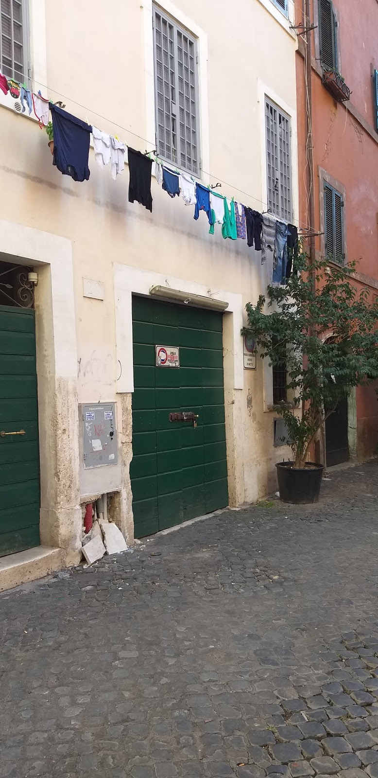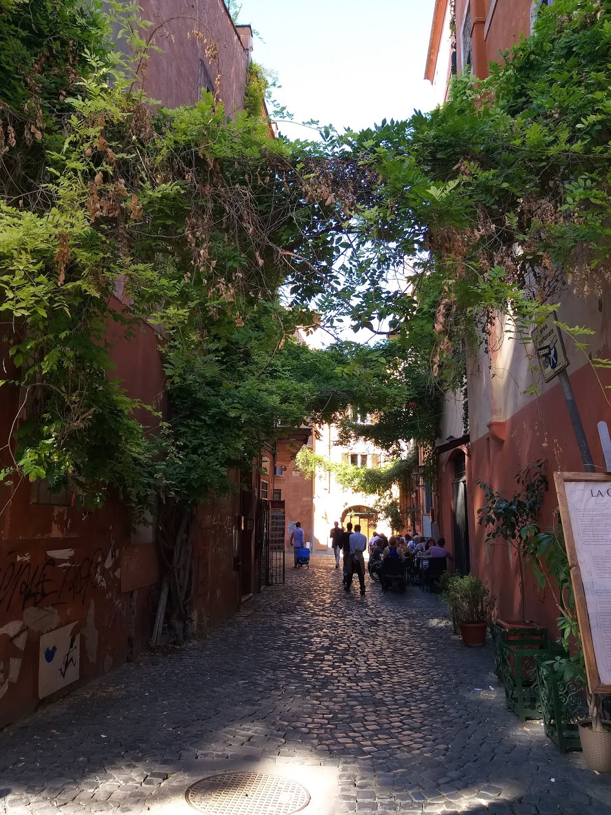 … i rośliny zwisające z „pomazanych” murów- oto Trastevere. |