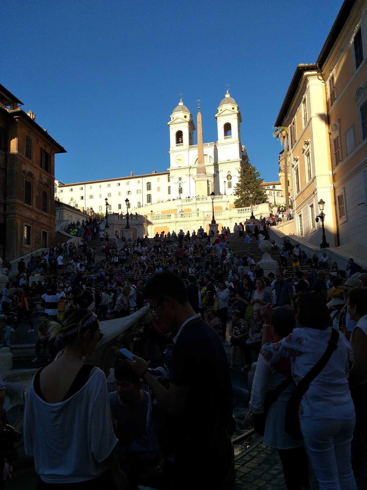 😉, a słynne schody były niemal niewidoczne przez tłumy turystów, chcących poczuć się niczym grana przez Audrey Hepburn w „Rzymskich Wakacjach” księżniczka Anna. Nie przepadam za tą częścią miasta. Zawsze uda mi się skręcić nie w tę uliczkę co trzeba i zgubić się, ale nie w taki sposób jak lubię. Zazwyczaj wychodzę nagle na jakiejś ruchliwej i głośnej ulicy. Jedyne miejsce w tej okolicy, do którego chętnie wracam to Piazza del Popolo. Nie wiem, co takiego jest w tym miejscu, ale bardzo lubię stać na środku placu lub wspiąć się na Terrazza del Pincio – podobno z tego miejsca