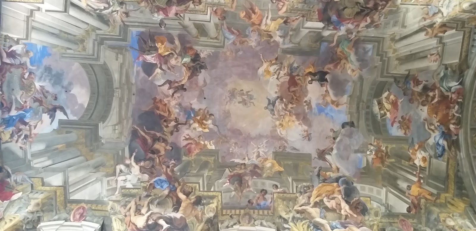 😉. Zmierzając już w „moją” część Rzymu trafiłam do kościoła świętego Ignacego Loyoli – to ten z fałszywą kopułą i freskiem, przedstawiającym otwierające się niebo. Podziwiam kunszt autora – złudzenie jest niesamowite.