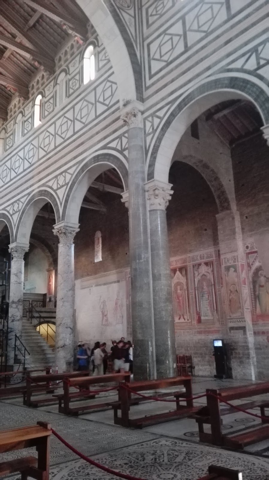 kolei znajdziemy trzy poziomy – środkowy z tradycyjnymi nawami, podniesiony z prezbiterium oraz podziemny, gdzie znajduje się krypta. Na ten ostatni poziom się nie „zapuszczałam”. Po wyjściu z kościoła przespacerowałam się jeszcze chwilę po okolicy i zeszłam na dół w poszukiwaniu miejsca, w którym mogłabym zjeść pyszną włoską kolację i napić się dobrego wina.