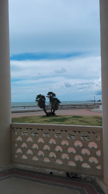 Kiedy wreszcie dotarłam do Terazza Mascagni, ze zdziwieniem stwierdziłam, że wychylając się przez barierki można zobaczyć morskie fale rozbijające się o promenadę, żadnej plaży. Powoli spacerowałam wzdłuż brzegu, po charakterystycznie ułożonych białych i czarnych kafelkach, tworzących wzór szachownicy. Co jakiś czas siadałam na kamiennych ławkach i obserwowałam statki wypływające z portu albo startujące i lądujące na lotnisku w Pizie samoloty. W przerwach między siedzeniem i spacerowaniem, po prostu stałam przy balustradzie i mówiąc brzydko, gapiłam się na morze i słuchałam szumu rozbijających się o brzeg fal. W oddali, mimo kapryśnej pogody, widać  było niewielkie wyspy, a przynajmniej z odległości takie się właśnie wydawały. Wszystko mówiło mi, że przyjazd tu to był bardzo dobry pomysł – nad Pizą zbierały się czarne deszczowe chmury, z drugiej strony niebo też nie wyglądało zachęcająco. Wydawało się, że chmury rozstąpiły się tylko nad  Livorno. Na moment nawet wyszło słońce. Nie wiem kiedy dotarłam na koniec promenady, a  w zasadzie to na jej początek – wyglądało to na wejście na deptak, obok stała urocza altanka. Szumiące morze i piękny widok spowodowały, że w ogóle nie czułam tego, że za plecami mam ruchliwą  i głośną ulicę. Podobnie jak nie czułam upływającego czasu – nie mam pojęcia kiedy minęły prawie trzy godziny. Wracając na dworzec, czułam, że właśnie to było mi potrzebne – chwila wytchnienia i spokoju. Czasem trzeba na moment zwolnić i wyciszyć się z dala od zgiełku i tłumów. Krótki wypad w pełni spełnił moje oczekiwania. Idąc wzdłuż jednej z bardziej ruchliwych ulic Livorno, nie słyszałam jadących tam samochodów, a nawet nadużywane przez kierowców klaksony nie irytowały mnie wcale.
