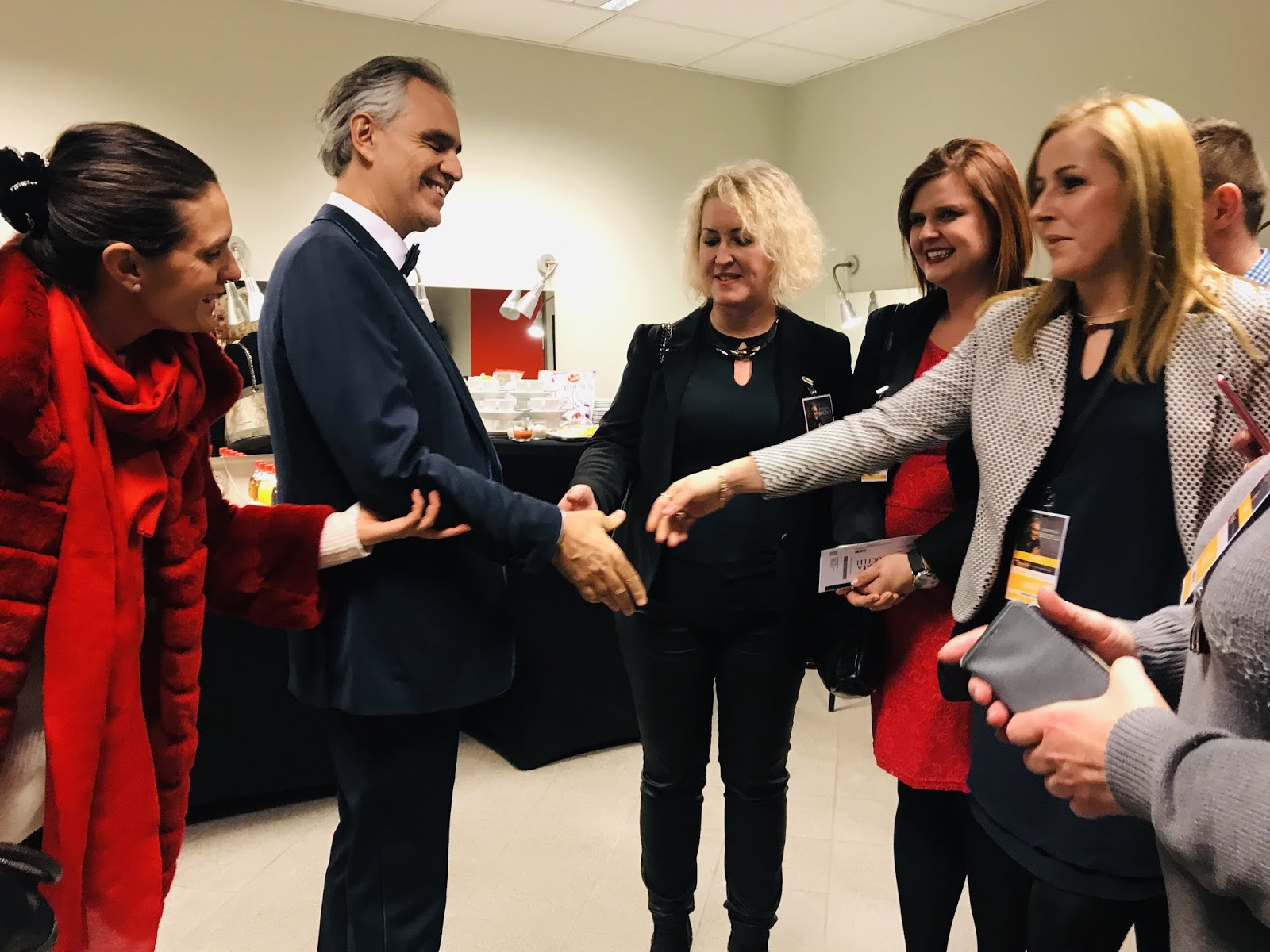 Andrea Bocelli – polska grupa fanów) poznałam też wiele osób, tak samo jak ja podziwiających Andreę i przemierzających Polskę, żeby móc go posłuchać na żywo. W styczniu, przed koncertem w Gdańsku mieliśmy okazję poznać się wreszcie poza internetową rzeczywistością i spotkać naszego idola. Tych emocji nie jestem w stanie opisać słowami. Z tego miejsca raz jeszcze dziękuję Natalii, która to wszystko wymyśliła, a dzięki temu spełniło się coś, o czym nawet nie śmiałam marzyć.