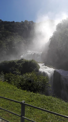 Co  ciekawe, nie jest on dziełem natury, ale… człowieka. To jeden z wielu przykładów wybitnych osiągnięć rzymskich inżynierów. Jego stworzenie miało na celu odwrócenie biegu rzeki Velino, w kierunku Nery i osuszenie bagnistych terenów, aby były zdatne do uprawy. Dzięki temu okoliczni mieszkańcy nie tylko mogli uprawiać ziemię, ale miasto nie było już narażone na powodzie, a poeci i filozofowie (m.in. Cyceron i Wergiliusz) zyskali miejsce kontemplacji i inspiracji. W późniejszych czasach inspirował i zachwycał także Dickensa, Byrona i wielu malarzy. Cały wodospad ma 165 m wysokości, jest najwyższym sztucznym wodospadem w Europie (najwyższa jego część ma wysokość 85 m). Miejsce to nie tylko cieszy oczy turystów – przez większość czasu woda gromadzona jest w zbiorniku i kierowana do elektrowni wodnej. W celu kontrolowania działania elektrowni i zapewnienia rozrywki turystom, wodospad jest włączany tylko w określonych porach dnia, zgodnie z harmonogramem, który można sprawdzić na stronie www.cascatadellemarmore.info. Bilety wstępu dostępne są na stronie lub bezpośrednio w kasie, normalny kosztuje 10 euro, ale obowiązują też zniżki dla dzieci, emerytów, grup itp.