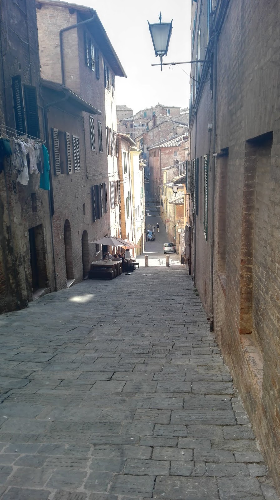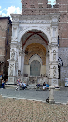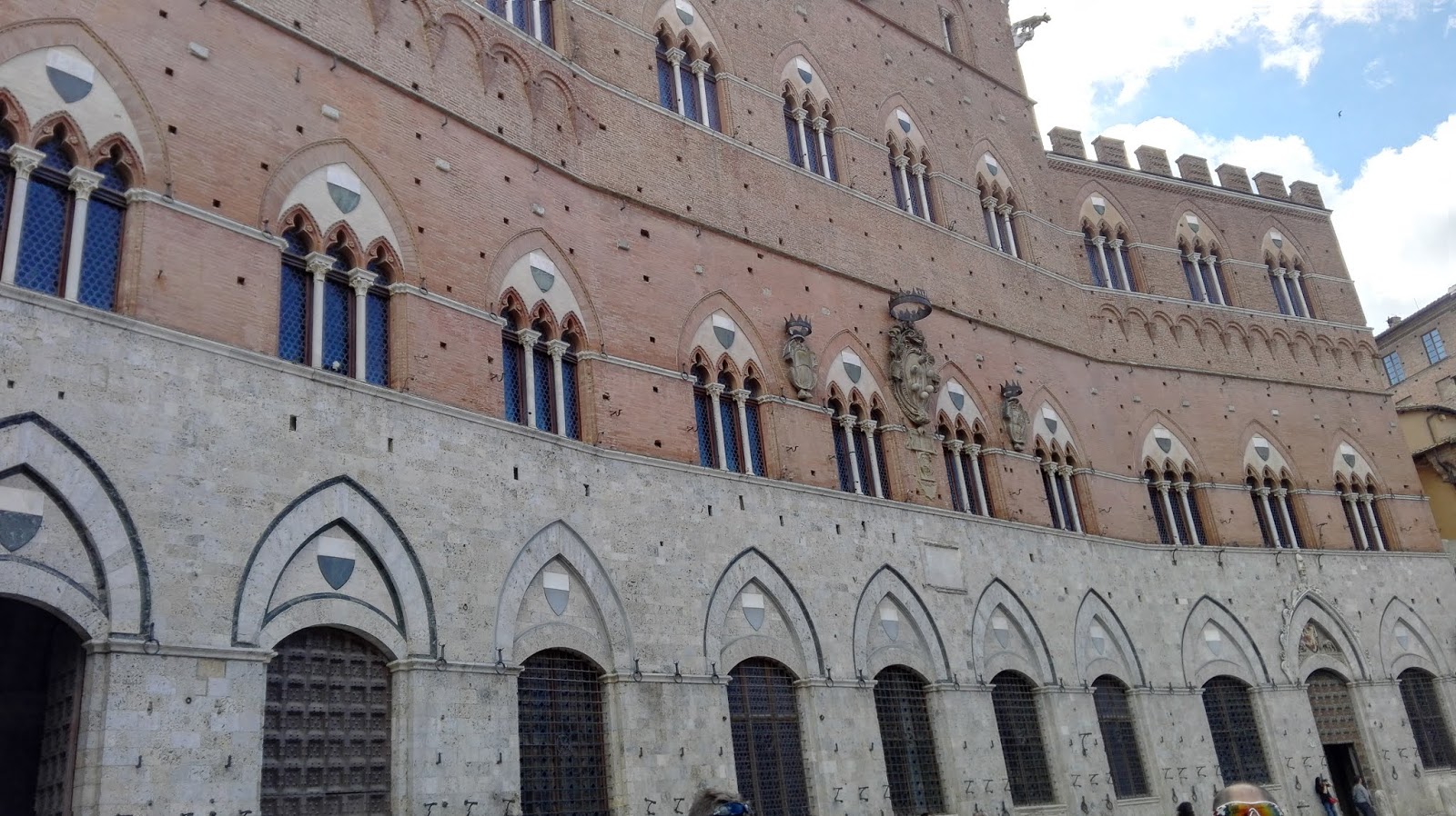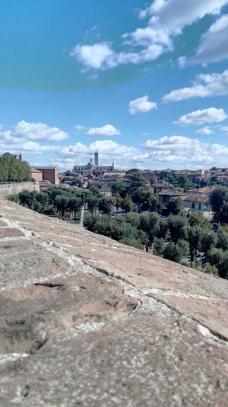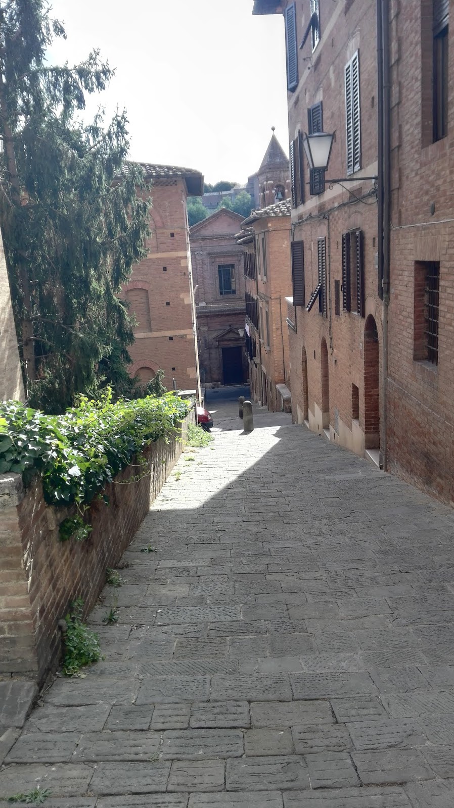 Zwiedzanie rozpoczęłam od spaceru z dworca kolejowego, w kierunku bardziej turystycznej części miasta. Jedynym miejscem, do jakiego kierowały mnie drogowskazy, była Basilica di San Domenico. Bez trudu odnalazłam ją na swojej mapie i w tamtą stronę postanowiłam iść dalej. Jednak, kiedy znalazłam się w pobliżu wysokiego muru, coś podpowiedziało mi, żeby przejść na jego drugą stronę. Posłuchałam tego tajemniczego chochlika i okazało się, że to był bardzo dobry pomysł. Z  tej strony spotkałam na swojej drodze wiele osób, grup turystów i szybko dostrzegłam znak wskazujący drogę do Piazza del Campo. Teraz byłam już na właściwej trasie.