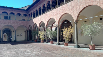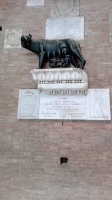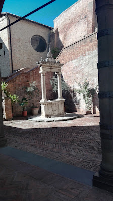 Wyszłam na zewnątrz, na wąską ulicę. Budynki stojące przy niej dawały schronienie od palącego nieznośnie słońca, choć była już długa połowa września. Spokojnie szłam dalej, żeby nie  tracić więcej energii niż to konieczne. W oddali zobaczyłam Bazylikę św. Dominika, do której zmierzałam na samym początku. Skoro chciałam tam pójść wcześniej, to czemu nie udać się tam teraz? Po drodze zajrzałam jeszcze do Sanktuarium świętej Katarzyny ze Sieny. Ta zmarła zaledwie w wieku 33 lat święta urodziła się właśnie w Sienie, a poświęcone jej sanktuarium mieści się częściowo w domu, w którym mieszkała. Nie jest to okazały i bogaty kościół, jak tutejsza katedra i gdybym szła przed siebie bez mapy, pewnie ominęłabym to miejsce.