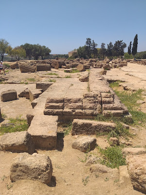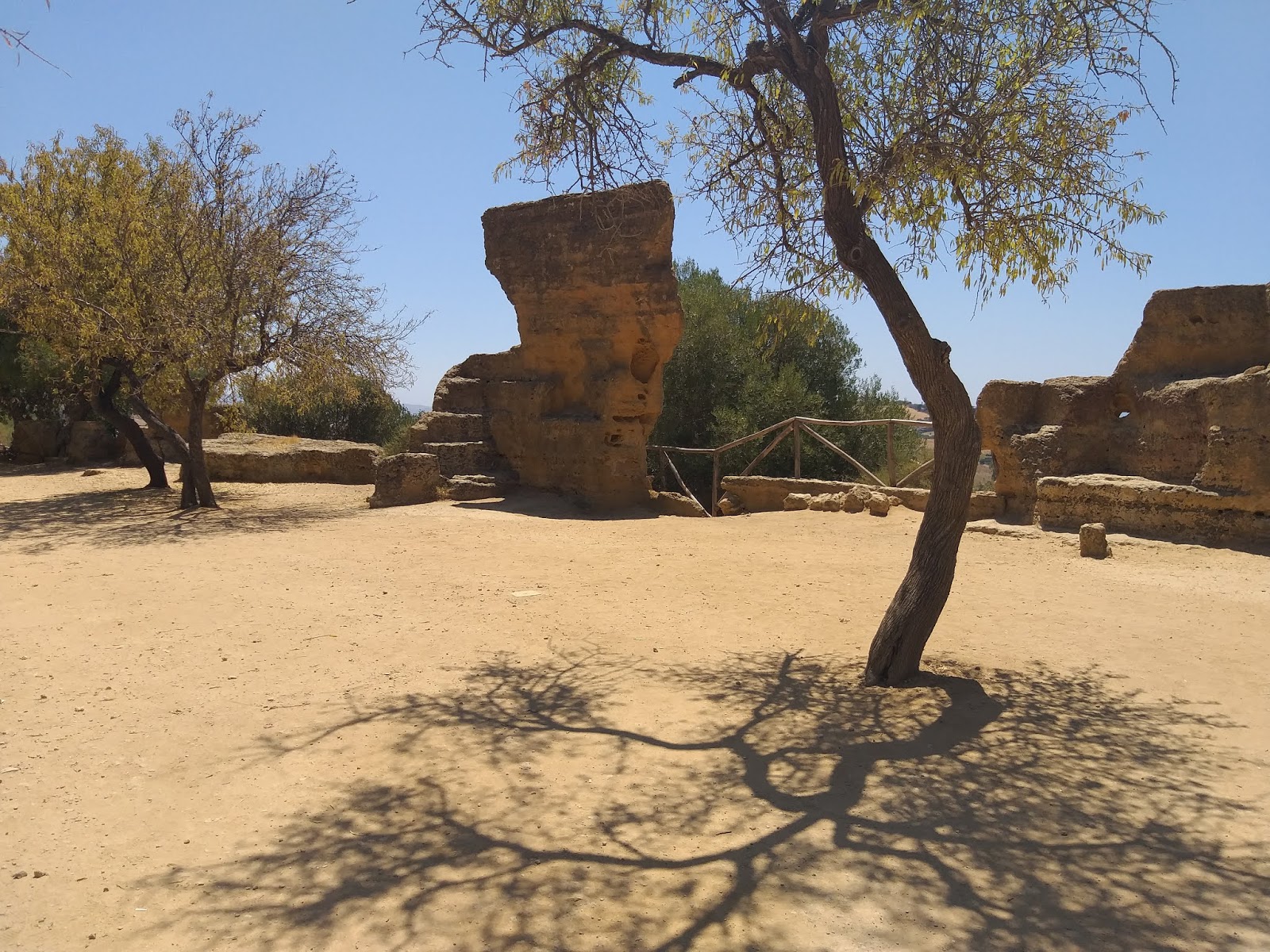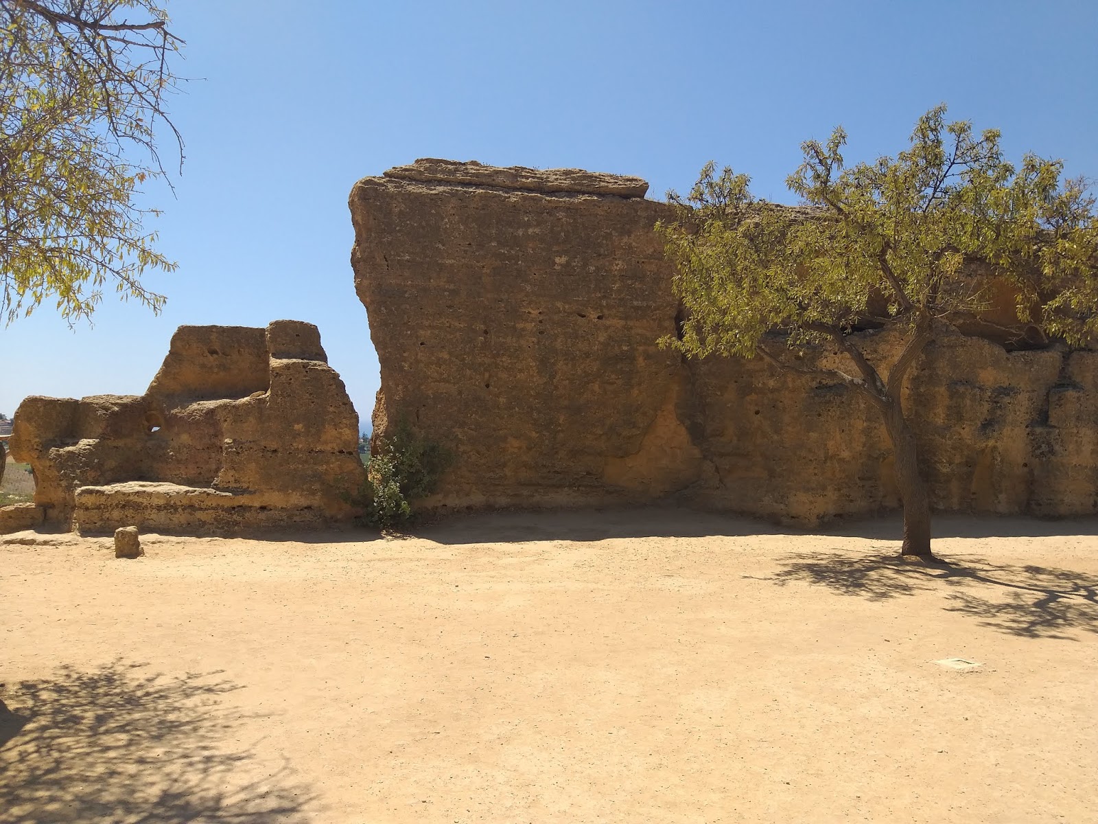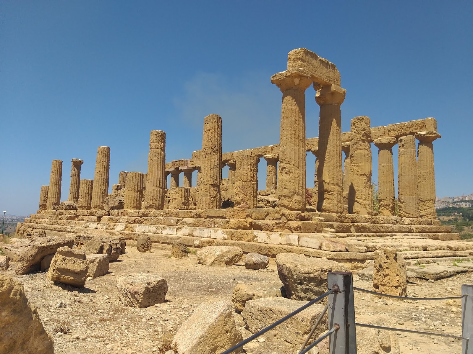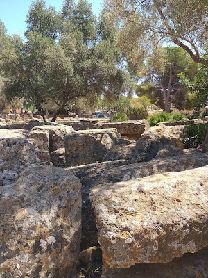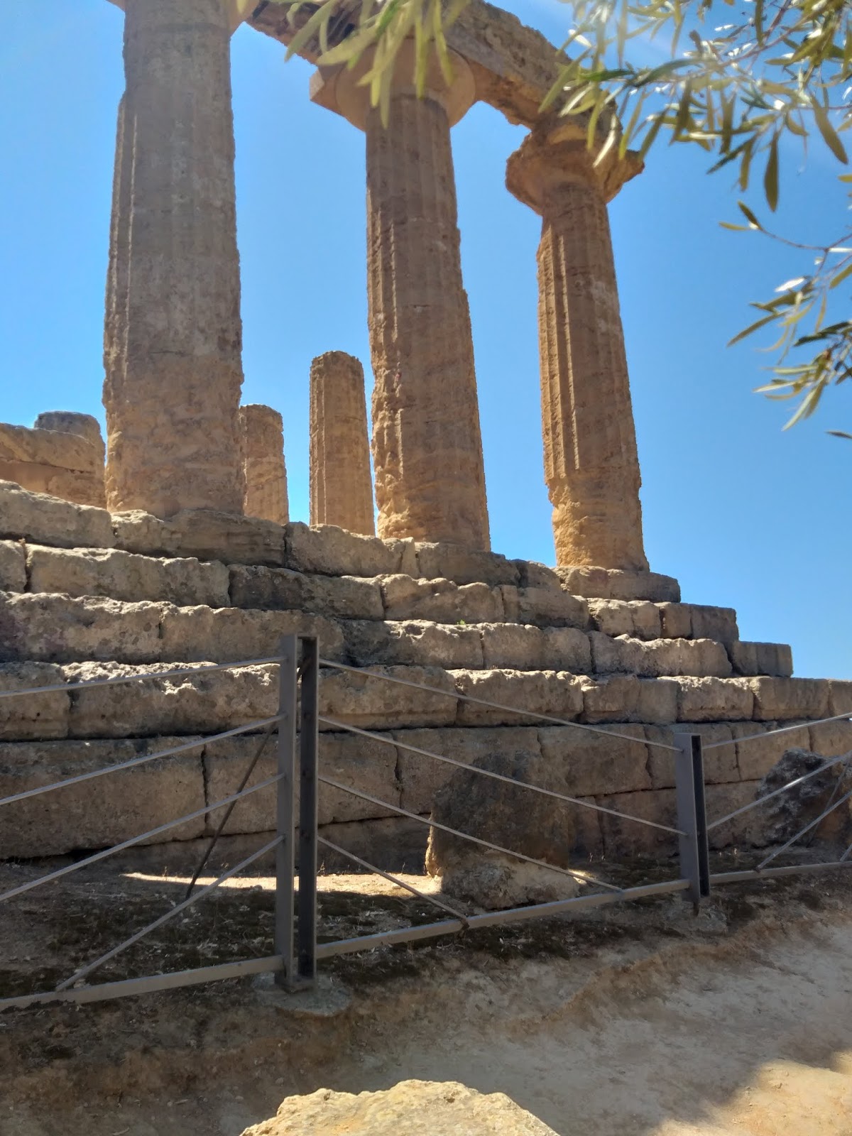 Kiedy już udało mi się wejść na teren parku, pierwsza na mojej drodze stanęła Świątynia Junony (Tempio di Giunone), doskonale widoczna już od wejścia, zbudowana na planie prostokąta, w stylu doryckim. Można znaleźć w niej pozostałości ołtarza, a niektóre bloki noszą ślady po ogniu podłożonym przez Kartagińczyków w 406 r. p.n.e. Idąc dalej w dół, po lewej stronie można podziwiać zachowane fragmenty murów otaczających teren dzisiejszego parku oraz grobowce w kamiennych niszach. Tutaj też rozciąga się Giardino dei Giusti del Mondo, czyli Ogród Sprawiedliwych Wśród Narodów Świata.