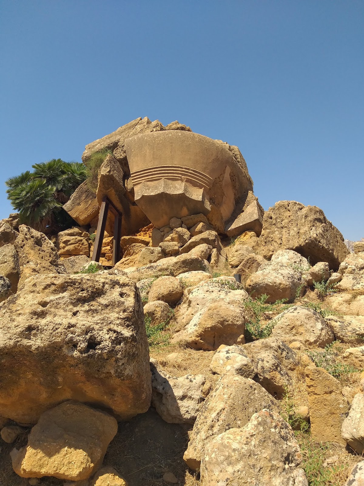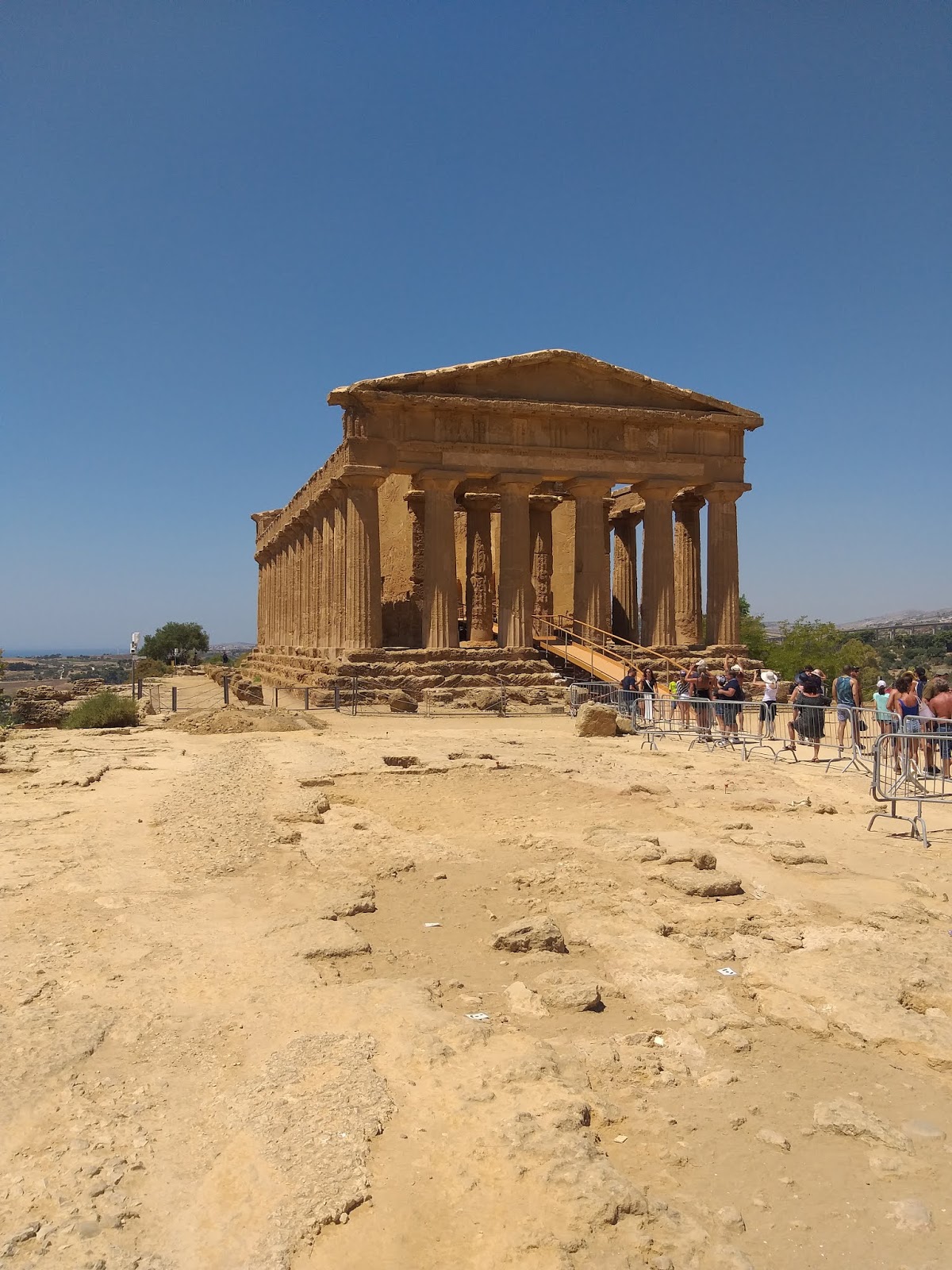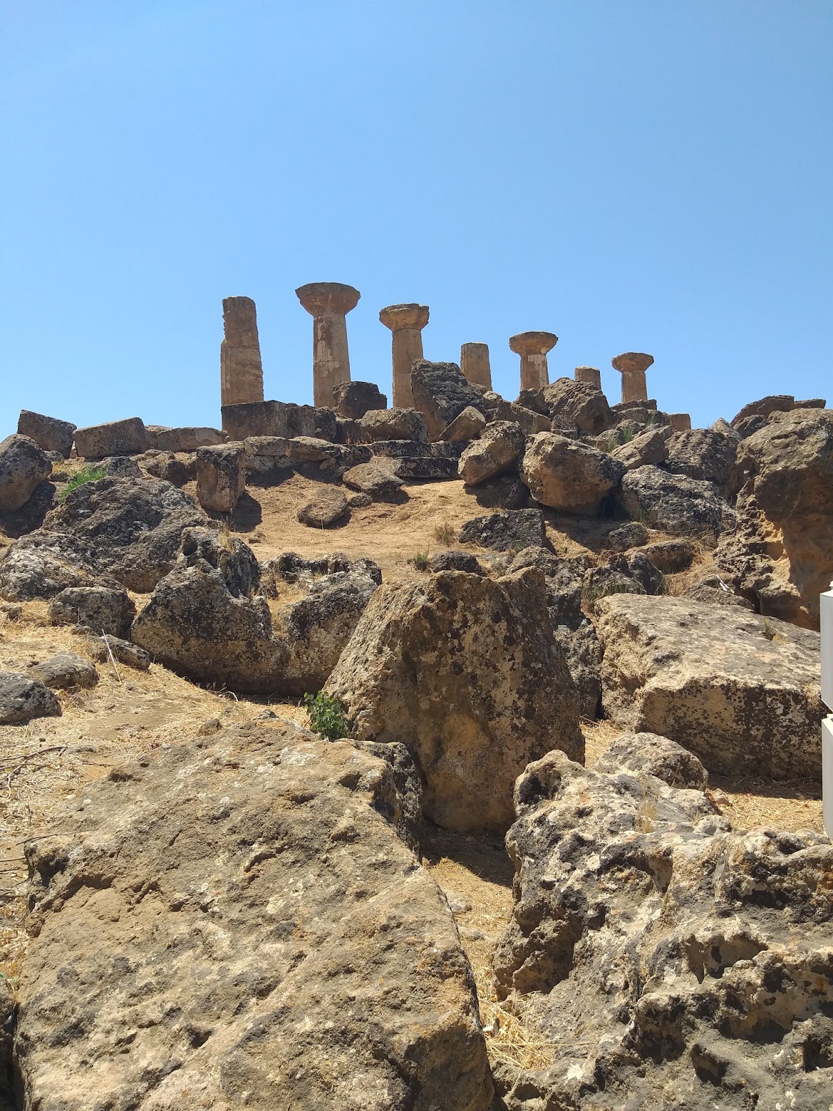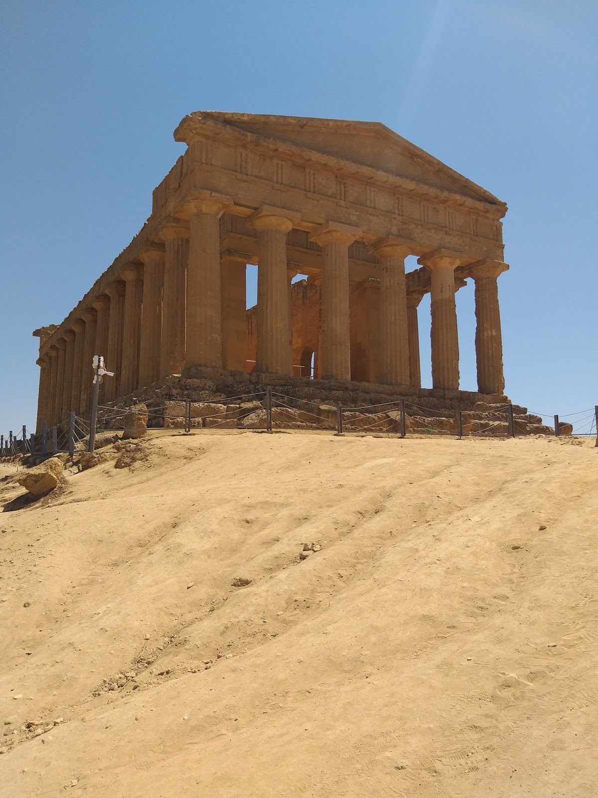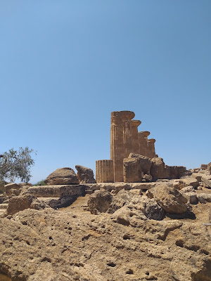 Dalej, idąc wzdłuż Via Sacra, po lewej stronie ujrzycie Świątynię Zgody (Tempio della Concordia), największą i najlepiej zachowaną świątynię dorycką na całej Sycylii. Nie sposób jej przeoczyć, podobnie jak znajdującą się przed nią rzeźbę „Ikar”, dłuta mistrza Igora Mitoraja. Kolejna świątynia to Świątynia Heraklesa (Tempio di Ercole), z której do dziś zachował się tylko rząd kolumn, ale stojąc z boku, kiedy dobrze się przyjrzymy i uruchomimy wyobraźnię, łatwo można zobaczyć, jak olbrzymie były jej rozmiary. Przechodząc kładką nad ulicą przecinającą dolinę, trafiamy na ruiny Świątyni Jowisza Olimpijskiego, z której pozostał jedynie jeden z telamonów podtrzymujących jej górną część. Zapewne większość pasjonatów starożytności, zauważyła, że w nazwach świątyń użyte zostały rzymskie odpowiedniki imion poszczególnych bogów i herosów. Jak to? Greckie zabytki i rzymskie nazwy? Otóż poszczególne świątynie zostały nazwane dopiero kilkaset lat temu, nie są one oryginalnymi nazwami, ale przyznacie, że biorąc pod uwagę bogatą historię Agrigento oraz jego nazwę z czasów rzymskich, takie nazewnictwo zabytków stanowi idealny symbol i pasuje tutaj doskonale.