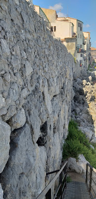 Pierwszym co przykuło mój wzrok, oprócz tłumu na plaży, było morze w kolorze turkusowo-granatowym. Kiedy odwróciłam się w prawo, od razu wiedziałam, że przyjście tu było dobrym pomysłem. Ponad rozłożonymi parasolami zobaczyłam starą część miasta, z dwiema katedralnymi wieżami i górującą ponad wszystkim Rocca. Nie pchałam się pomiędzy plażowiczów, ale postanowiłam przespacerować się wzdłuż nadmorskiego deptaka. Obiecałam sobie, że po zwiedzaniu przejdę się wzdłuż plaży i zamoczę chociaż stopy w morskiej wodzie.