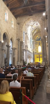 Pokręciłam się chwilę po ulicach, pod wiszącym między domami praniem – Włosi nie mają problemu z wywieszaniem wypranej bielizny w dzień świąteczny 😉. Bardzo chciałam znaleźć jakieś miejsce, o którym nie pisał przewodnik. Zaciekawił mnie drogowskaz prowadzący do Świątyni Diany. Dobrze wiecie, że lubię wszelkie pozostałości po czasach antycznych, więc podążyłam za strzałką. Droga kierowała mnie coraz bardziej pod górę i wszystko wskazywało na to, że ruiny świątyni znajdują się na wiszącej nad miastem Rocca. Im dalej szłam, tym mniej ludzi spotykałam na swojej drodze. Chętnie uciekłam od tłumów, ale zaczynałam czuć się nieswojo no i nie wiedziałam jak trasa będzie wyglądać dalej i czy dam radę w letnim obuwiu. Chociaż miałam ochotę obejrzeć okolicę z góry, zawróciłam. Po raz kolejny zwyciężył zdrowy rozsądek i (trochę wstyd się przyznać) strach. Minęło już sporo czasu, więc liczyłam, że teraz uda mi się wejść do Katedry i spędzić w niej trochę więcej czasu. Niestety, po mszy zamknięta była nawet brama. Przyznam, że byłam bardzo niepocieszona, bardzo chciałam zobaczyć to miejsce, przyjrzeć się dokładnie pięknej mozaice nad ołtarzem. Najwyraźniej nie tym razem ☹.